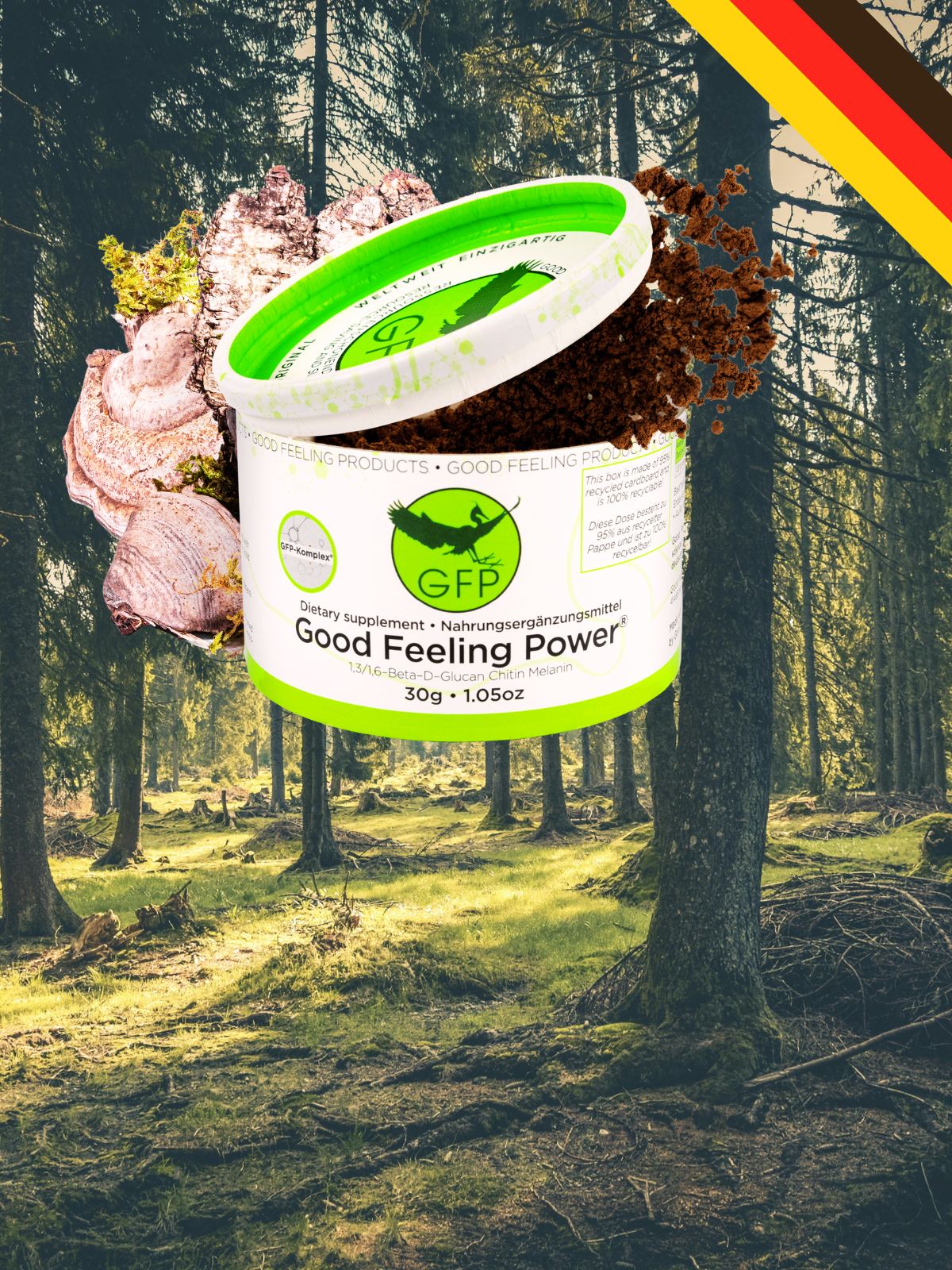 Seit dem Jahr 2008 nimmt sich Good Feeling Products dieser Aufgabe an und forscht nachhaltig und konsequent zum Zunderschwamm. Hauptgegenstand der Forschung ist der GFP-Komplex®, auch als Good Feeling Power® bekannt. Dieser ist die speziell aufbereitete Hohlfaser „Beta-1,3-1,6-D-Glucan-Chitin-Melanin“. Einzig und allein Good Feeling Products ist in der Lage, den GFP-Komplex® aus dem Zunderschwamm zu gewinnen.
